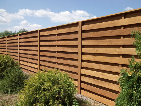 Горизонтальные доски длиной от 3х до 6ти метров, переплетенные вокруг опорных столбов. Так же, как и шахматка имеет одинаково эстетичный вид и с внутренней стороны, но меньший расход материала, за счет отсутствия наложения. Просвет минимальный - забор почти сплошной.