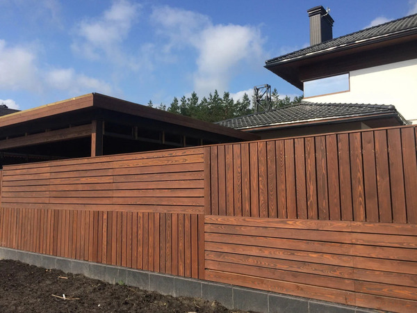 Для заборов и фасадов используется древесина хвойных пород (сосна или лиственница).